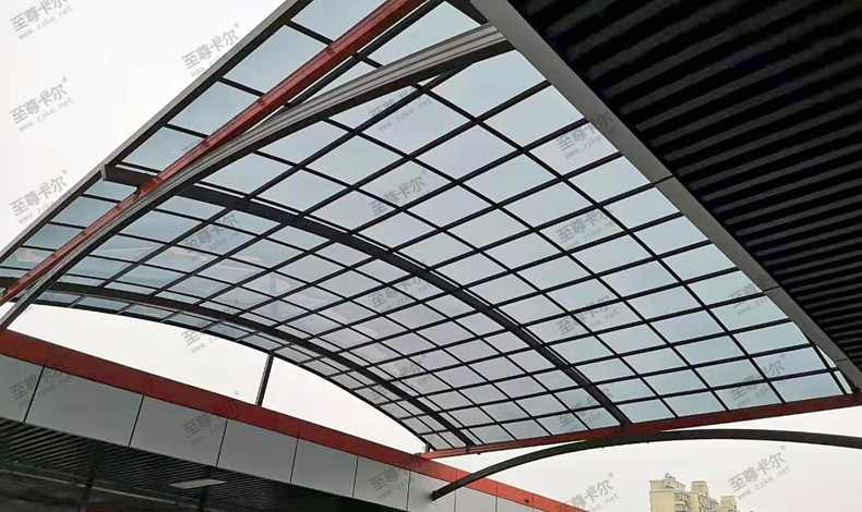 新型地下停車場雨棚你見過嗎?至尊卡爾雨棚!說起雨棚,大家的反應就是最常見的玻璃材質,對玻璃這一材質大家是非常熟悉的,透明的,也有不少地下停車場雨棚都是使用的玻璃