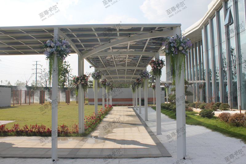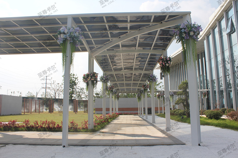 緊張的施工過后,最終的效果圖也變成現(xiàn)實(shí)一樣擺在我們面前,現(xiàn)場如天堂一般。純白無瑕的鋁合金骨架每一根壁厚都高達(dá)4mm,深入地下70CM隨后經(jīng)過水泥澆筑,搭配上淺灰色高強(qiáng)度聚碳酸酯板,整體雨棚具有高強(qiáng)抗風(fēng)壓性,可抗12級(jí)臺(tái)風(fēng)、25mm厚積雪,完全保證了整體雨棚的安全性和穩(wěn)定性,接下來讓我們盡情感受一下現(xiàn)場帶來的震撼。