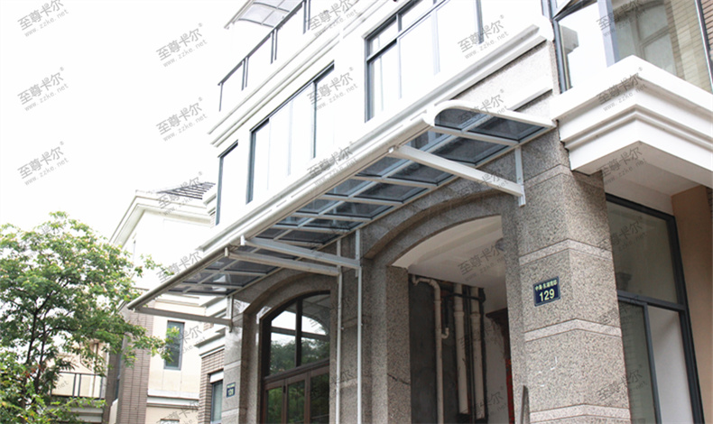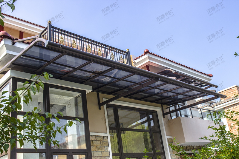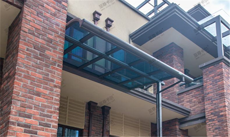 鋁合金雨棚不僅款式多樣,而且顏色也多樣,如至尊卡爾的鋁合金雨棚,鋁合金骨架可選顏色有香檳色、咖啡色、白色、黑色,頂棚可選顏色有深灰、淺灰、透明,豐富的顏色適合搭配不同的裝修風格,讓房屋更美觀,看看下面這些鋁合金雨棚圖片大全。